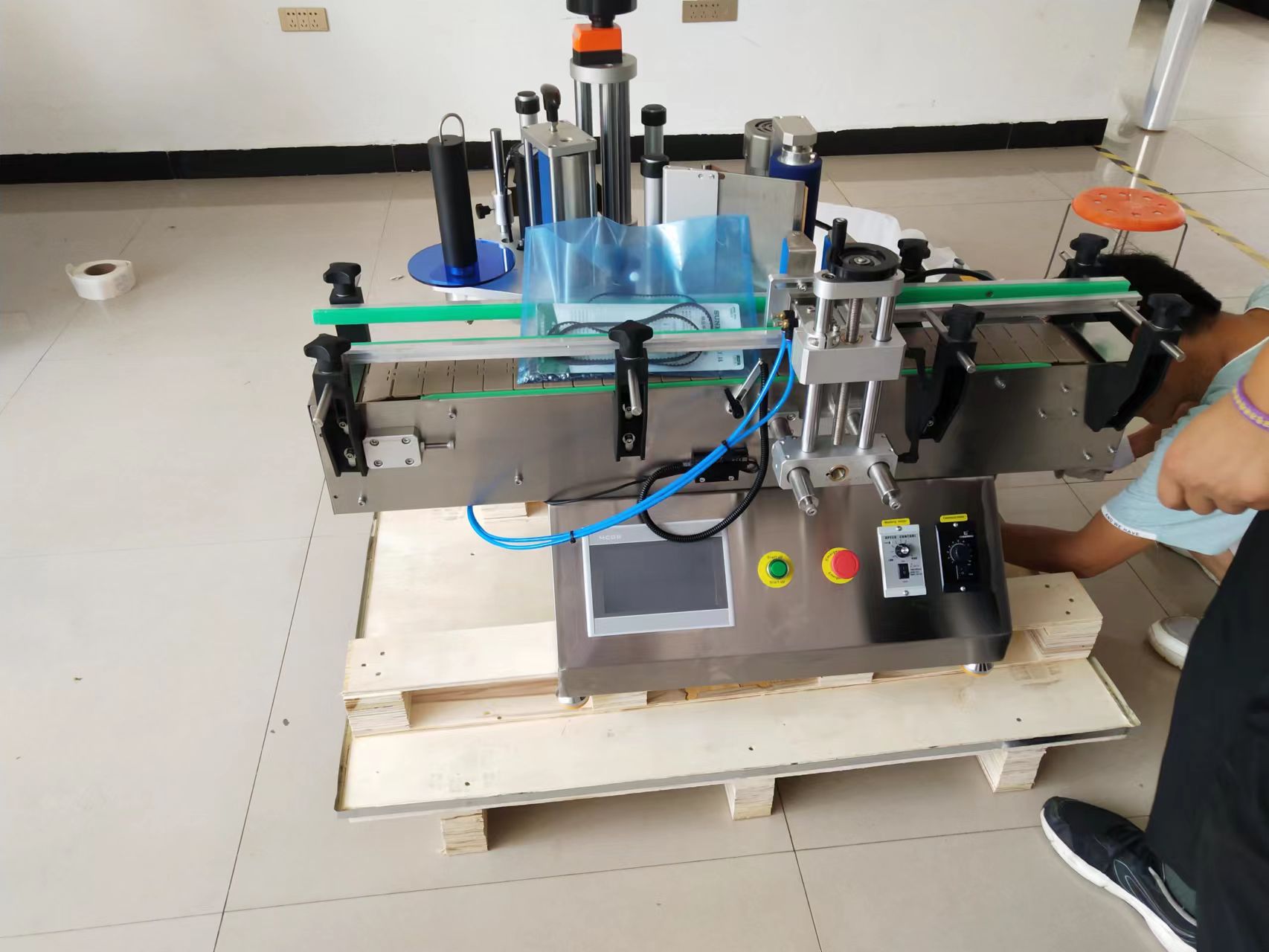 3.標簽前后不對齊可以調整支撐桿的傾斜度,使標簽恢復到需要貼標的位置